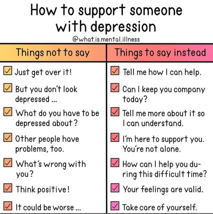 - Learn about mental illness and share anything interesting with us. We might not react well because we are likely shocked that you are making the effort (and perhaps in denial about our condition or a fact you are presenting) but we appreciate your support and thoughtfulness even if we don’t admit it.